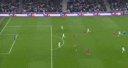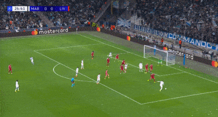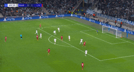 半场补时第2分钟,索博斯洛伊主罚前场任意球,选择直接贴地斩破门,利物浦1-0马赛。