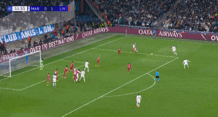第60分钟,特拉奥雷面对阿利松射门打飞,马赛错失良机。